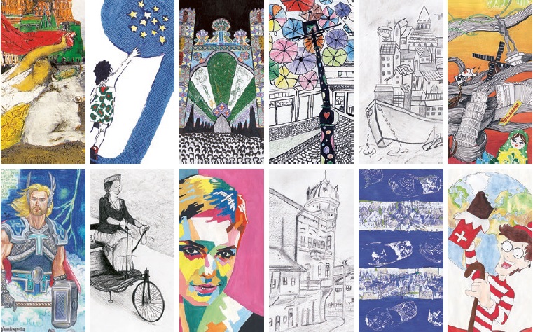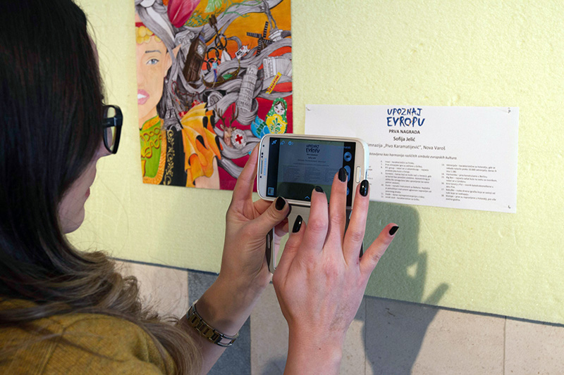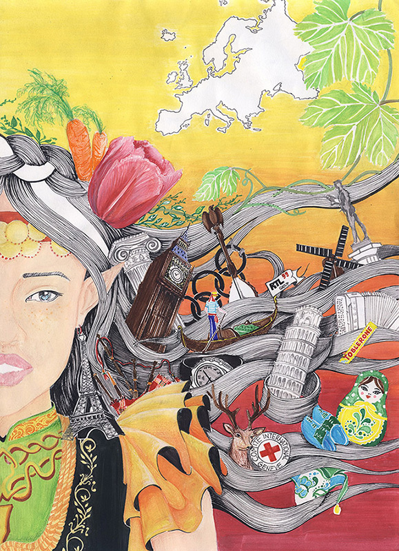 Prva nagrada, Sofija Jelić, Gimnazija „Pivo Karamatijević“, Nova Varoš. Evropa predstavljena kao harmonija različitih simbola evropskih kultura.