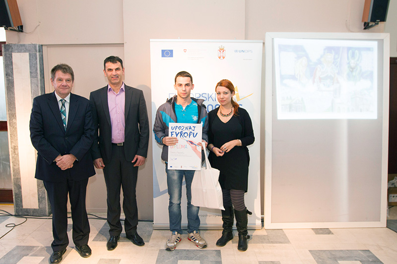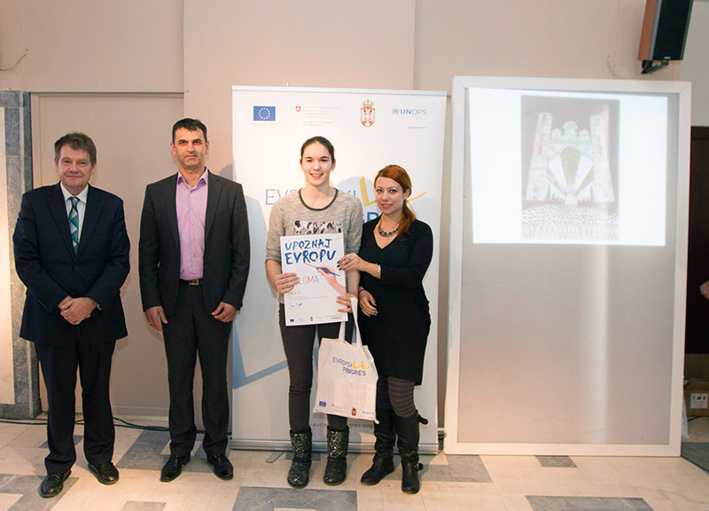 Druga nagrada, Nikola Kostić, Tehnička škola, Vladičin Han. Reč Evropa potiče iz starogrčke mitologije. Evropa je bila prelepa feničanska princeza koja je Zevsu rodila troje dece. Etimološki, reč Evropa može da znači „široko“, odnosno „širokih pogleda“.