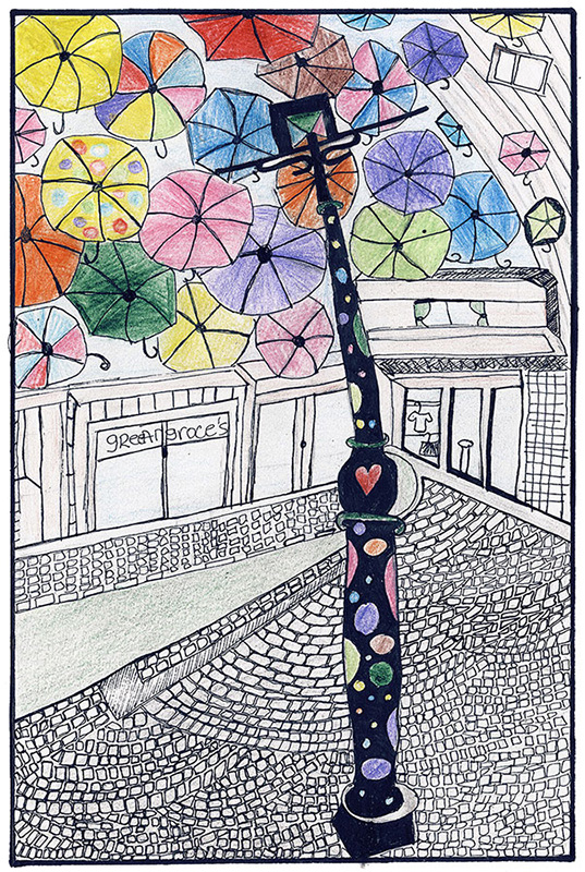 Marija Mladenović, Srednja škola, Grdelica, Leskovac. U sklopu Agitagueda art festivala, svakog jula na ulicama Aguera u Portugaliji, stotine raznobojnih kišobrana postavljenih iznad šetališta daje živost i boju ulicama i štiti šetače od vrućine.