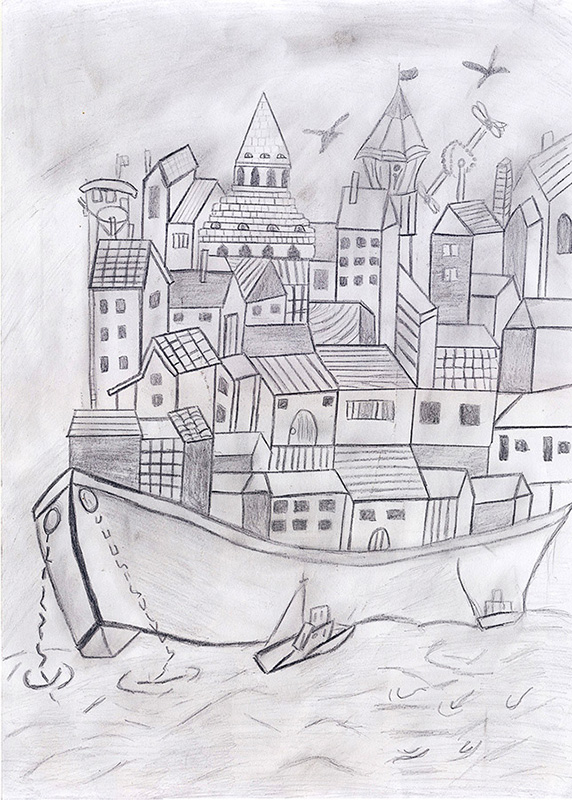 Dielza Presheva, Srednja tehnička škola, Preševo. Jeta është si një barkë në të cilën lundrojmë të gjithë së bashku. Si edhe Evropa. Život je kao barka u kojoj svi plovimo zajedno. Kao i Evropa.